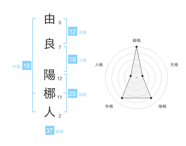 由良 陽梛人さんを姓名の画数から五運を鑑定