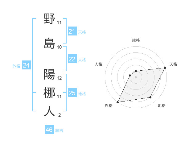 野島 陽梛人さんの外格は24画の5点!