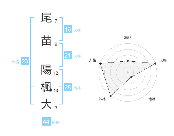 尾苗 陽楓大さんを姓名の画数から五運を鑑定
