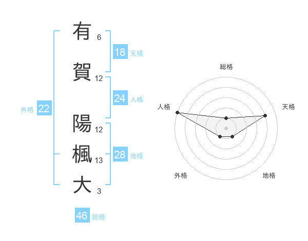 有賀 陽楓大さんを姓名の画数から五運を鑑定