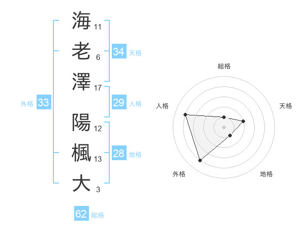 海老澤 陽楓大さんを姓名の画数から五運を鑑定