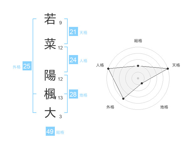 若菜 陽楓大さんを姓名の画数から五運を鑑定