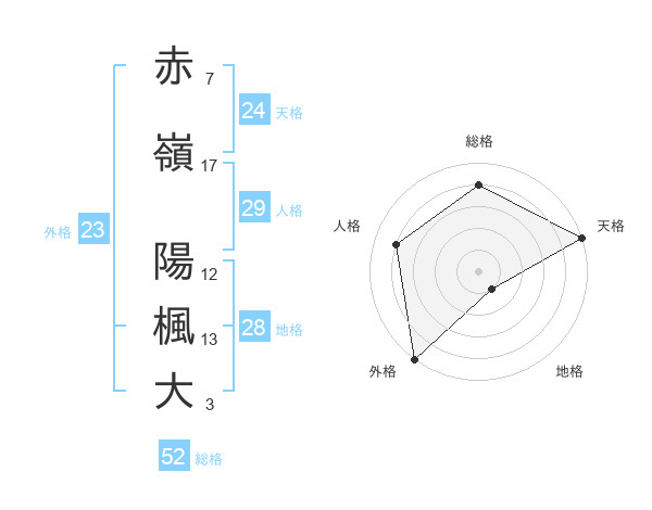 赤嶺 陽楓大さんを姓名の画数から五運を鑑定