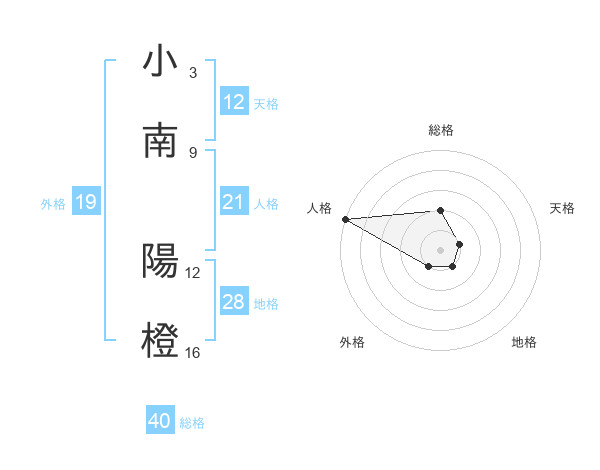 小南 陽橙さんを姓名の画数から五運を鑑定