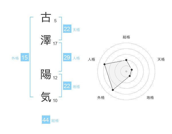 古澤 陽気さんを姓名の画数から五運を鑑定