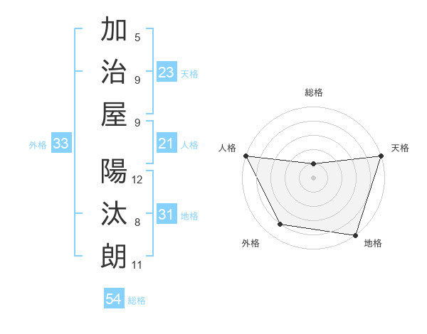 加治屋 陽汰朗さんの天格は23画の5点