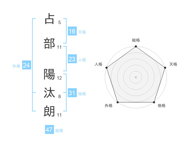 占部 陽汰朗さんを姓名の画数から五運を鑑定