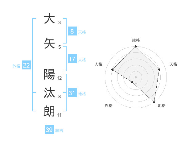 大矢 陽汰朗さんの総格は39画の5点!