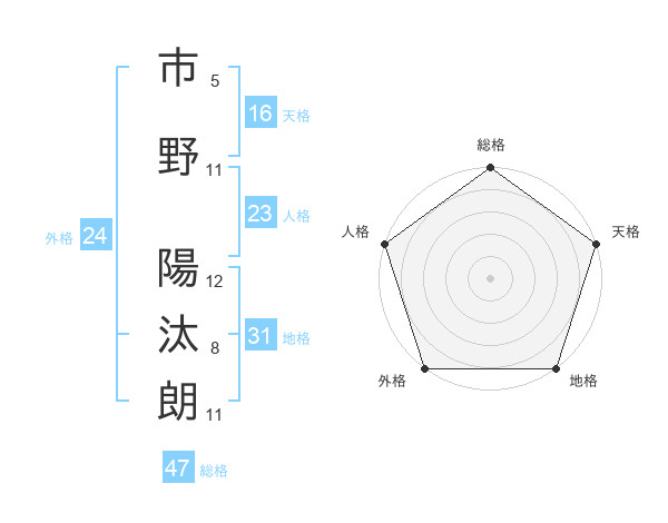 市野 陽汰朗さんを姓名の画数から五運を鑑定