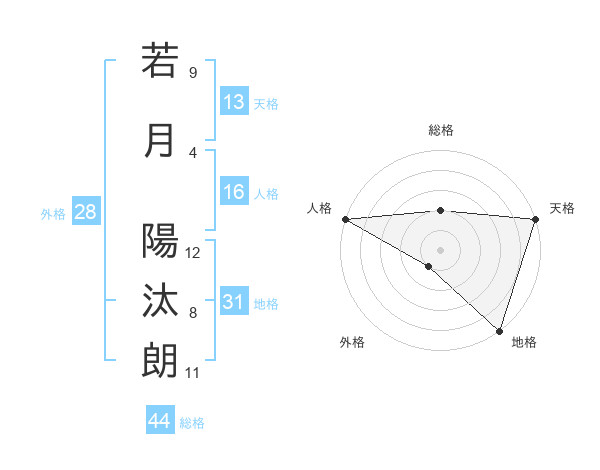 若月 陽汰朗さんを姓名の画数から五運を鑑定
