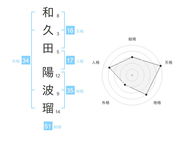 和久田 陽波瑠さんの総格は51画の3点!