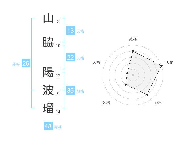 山脇 陽波瑠さんの総格は48画の4点!