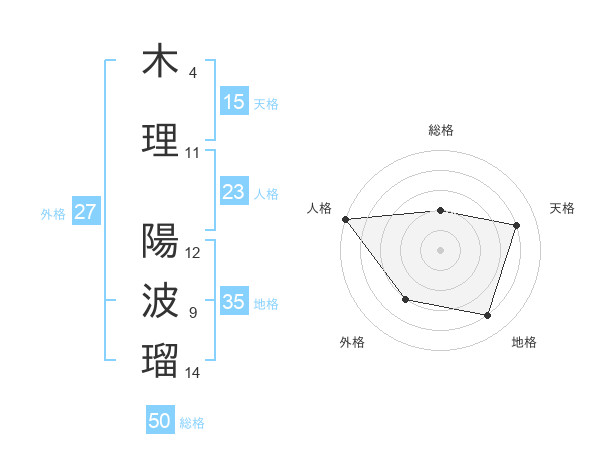 木理 陽波瑠さんの総格は50画の2点!