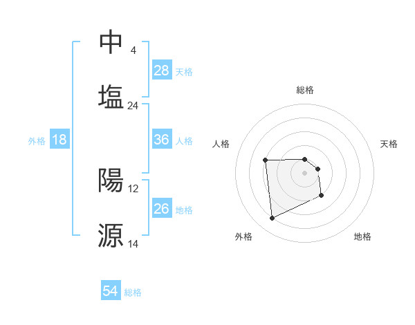 中塩 陽源さんを姓名の画数から五運を鑑定