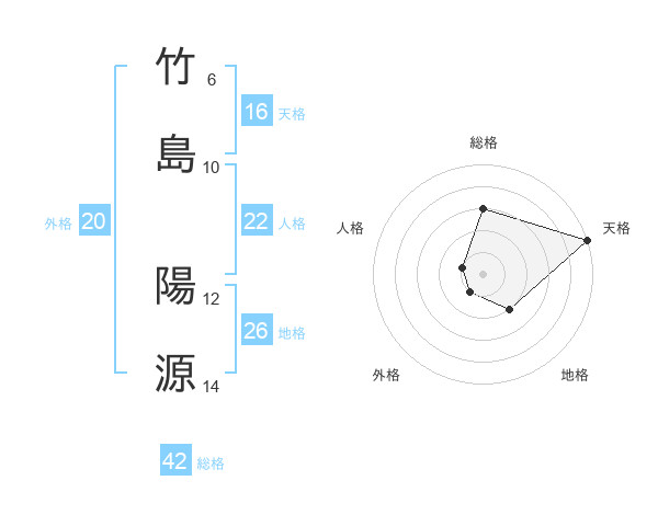 竹島 陽源さんを姓名の画数から五運を鑑定