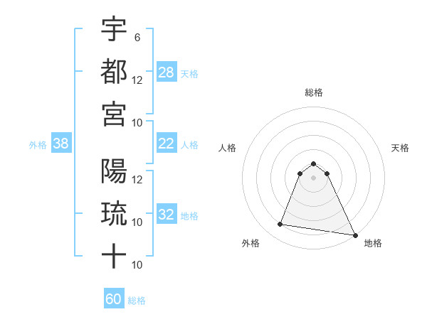 宇都宮 陽琉十さんを姓名の画数から五運を鑑定
