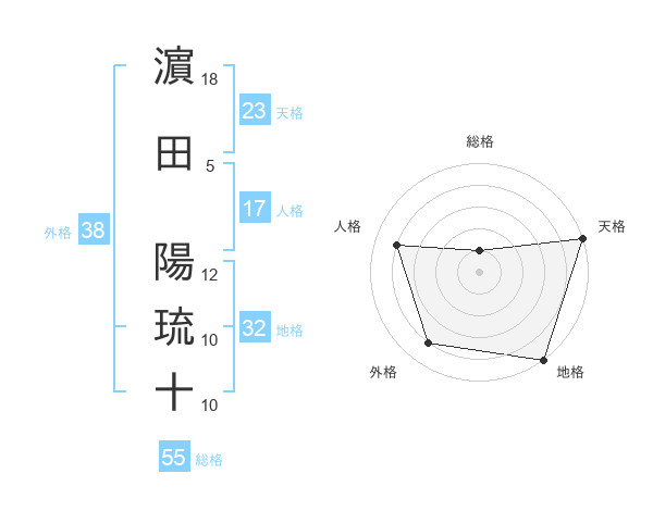 濵田 陽琉十さんの外格は38画の4点!