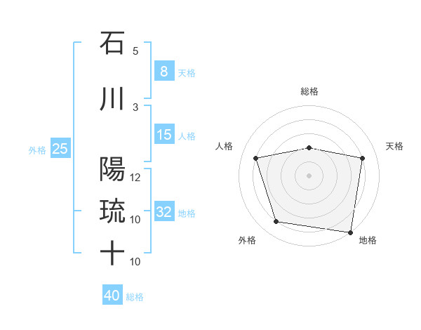石川 陽琉十さんを姓名の画数から五運を鑑定