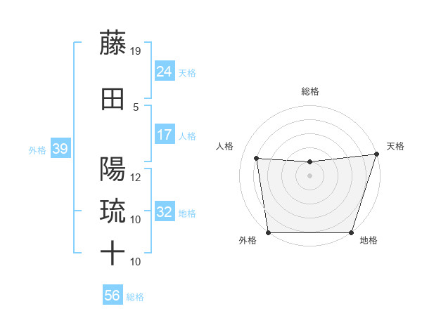 藤田 陽琉十さんの外格は39画の5点!