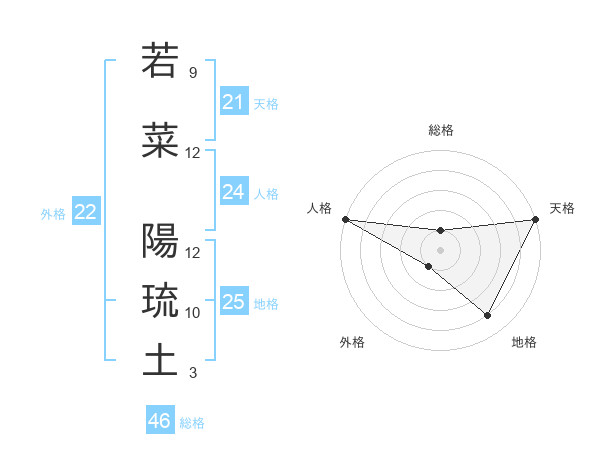 若菜 陽琉土さんの総格は46画の1点!