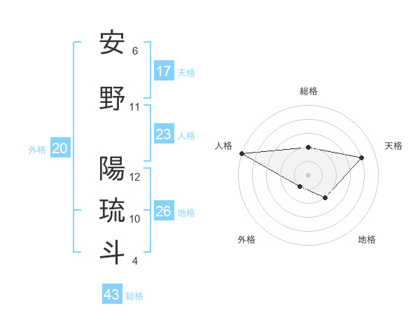 安野 陽琉斗さんの天格は17画の4点!