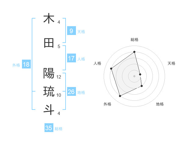 木田 陽琉斗さんを姓名の画数から五運を鑑定