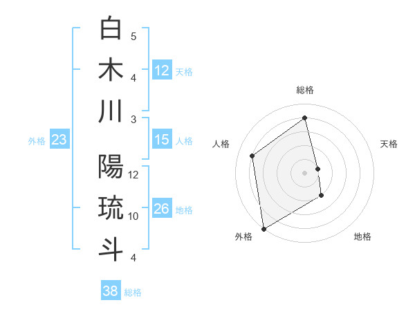 白木川 陽琉斗さんの外格は23画の5点!