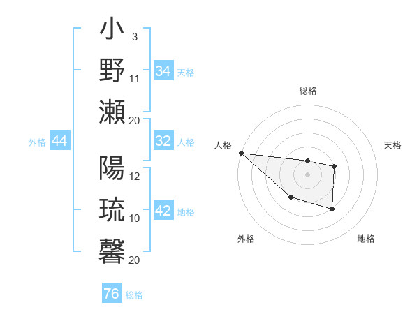 小野瀬 陽琉馨さんの総格は76画の1点!