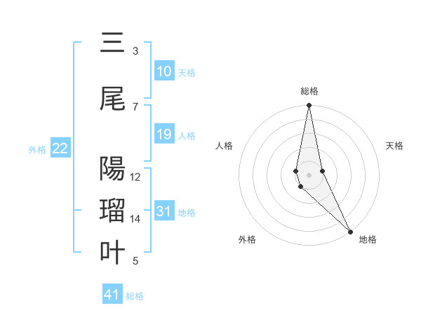 三尾 陽瑠叶さんを姓名の画数から五運を鑑定