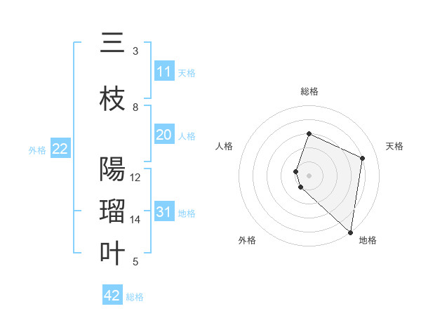 三枝 陽瑠叶さんの地格は31画の5点!
