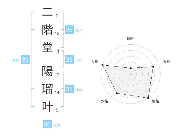 二階堂 陽瑠叶さんの天格は25画の4点!