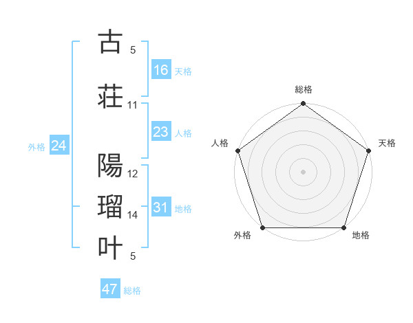 古荘 陽瑠叶さんの総格は47画の5点!