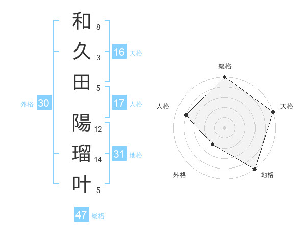 和久田 陽瑠叶さんを姓名の画数から五運を鑑定