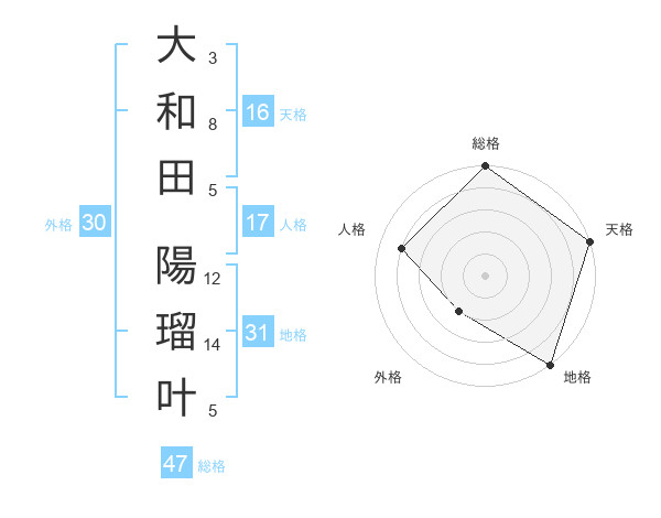 大和田 陽瑠叶さんを姓名の画数から五運を鑑定
