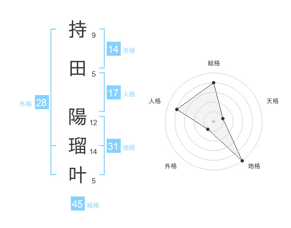 持田 陽瑠叶さんを姓名の画数から五運を鑑定