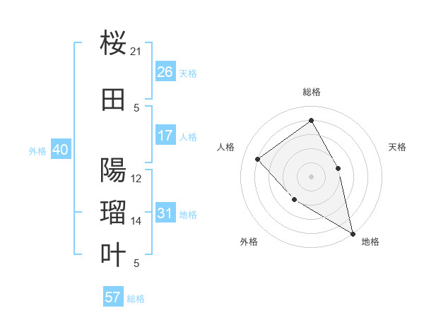 桜田 陽瑠叶さんを姓名の画数から五運を鑑定