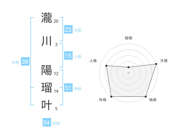 瀧川 陽瑠叶さんの外格は39画の5点!
