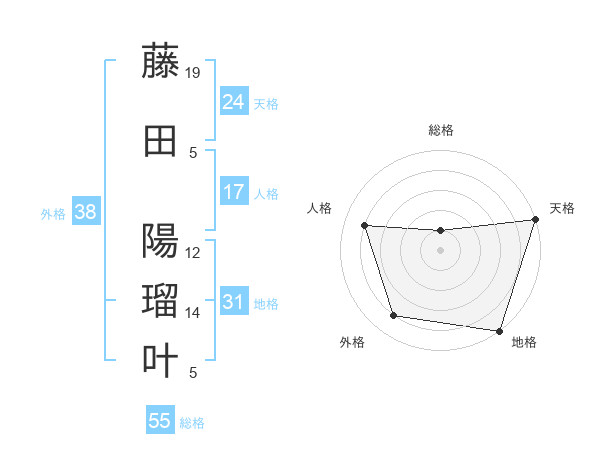 藤田 陽瑠叶さんを姓名の画数から五運を鑑定
