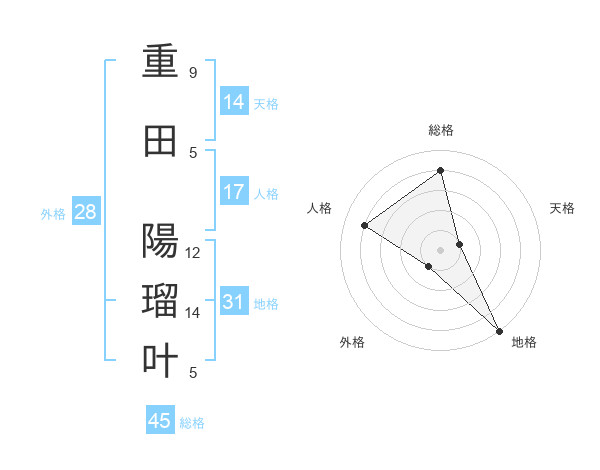 重田 陽瑠叶さんを姓名の画数から五運を鑑定