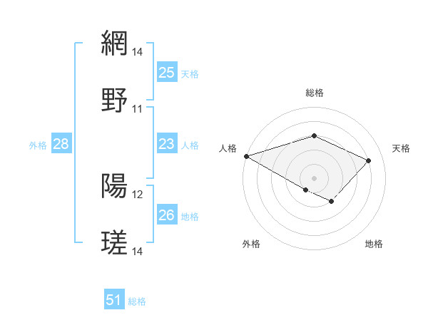 網野 陽瑳さんを姓名の画数から五運を鑑定