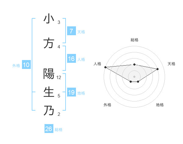 小方 陽生乃さんを姓名の画数から五運を鑑定