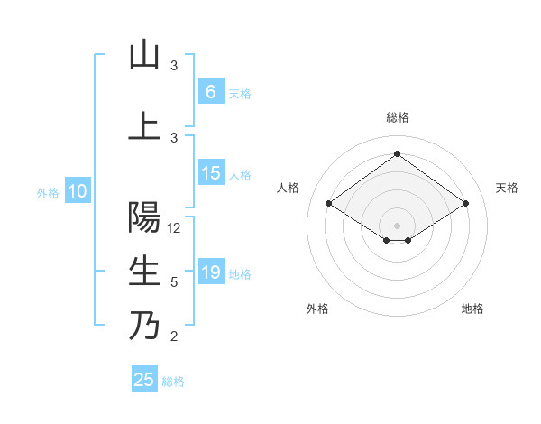 山上 陽生乃さんを姓名の画数から五運を鑑定