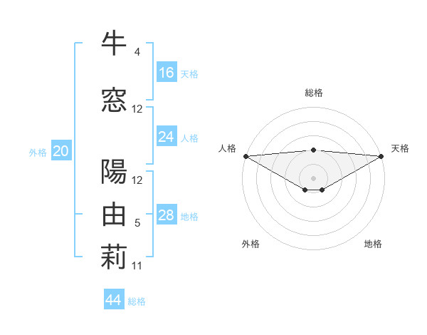牛窓 陽由莉さんの天格は16画の5点!
