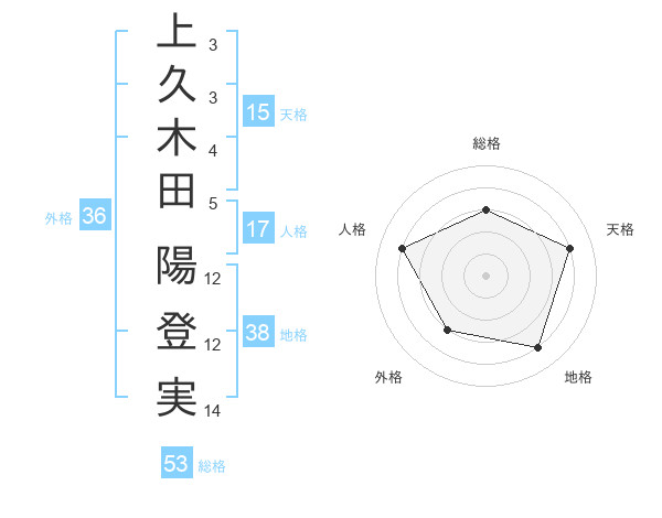 上久木田 陽登実さんを姓名の画数から五運を鑑定