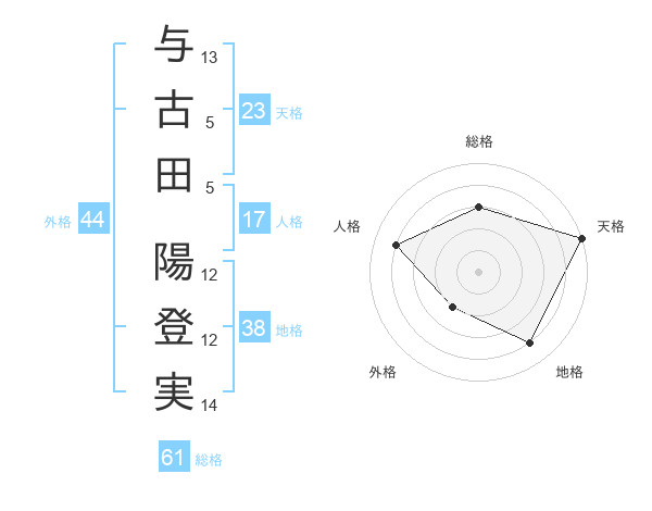 与古田 陽登実さんを姓名の画数から五運を鑑定