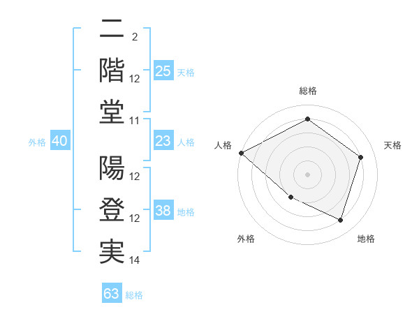 二階堂 陽登実さんの総格は63画の4点!