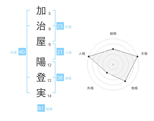 加治屋 陽登実さんを姓名の画数から五運を鑑定