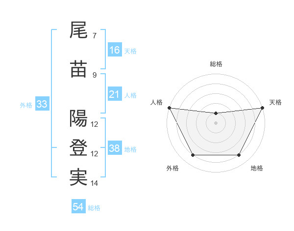 尾苗 陽登実さんを姓名の画数から五運を鑑定