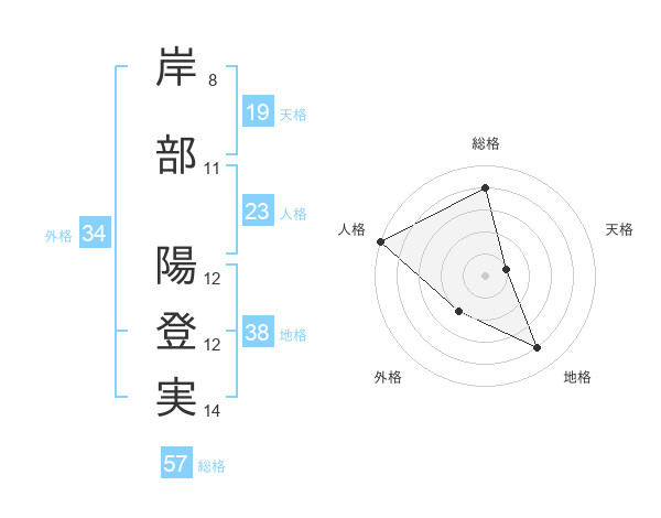 岸部 陽登実さんの総格は57画の4点!