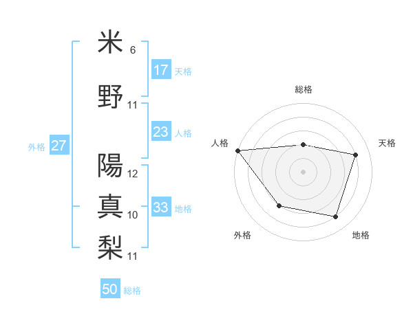米野 陽真梨さんを姓名の画数から五運を鑑定